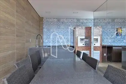 O destaque fica por conta do espaço gourmet completo, com churrasqueira elétrica, cooktop embutido, mesa para 8 lugares, lavabo e chuveiro externo com espelho d’água — ideal para momentos de lazer e descontração.
